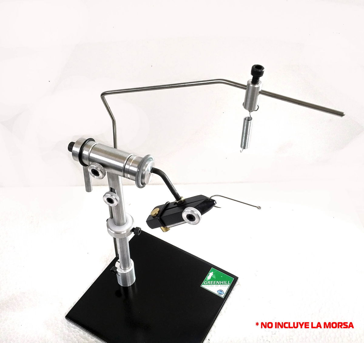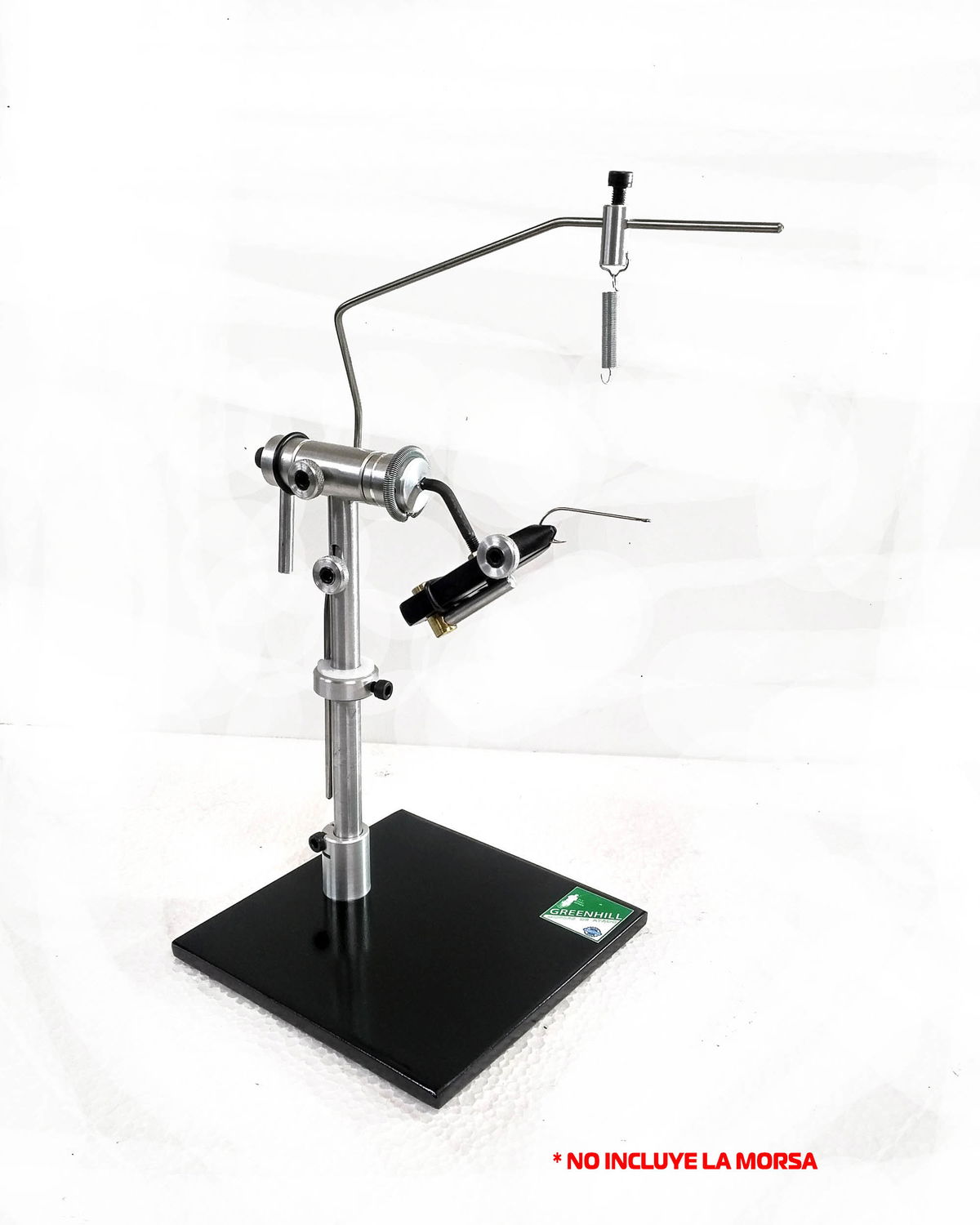 El brazo es ajustable en altura y distancia para adaptarse a todos los tamaños de anzuelos.